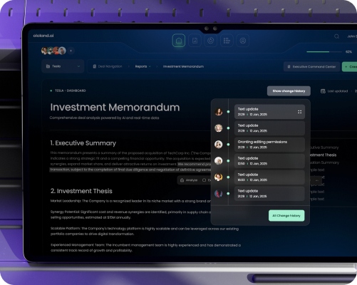ololand.ai solves the speed, capacity, and risk discovery problem—enabling Private Equity and Corporate M&A deal teams to analyze 3x more deals in 95% less time while finding the hidden risks that competitors miss.